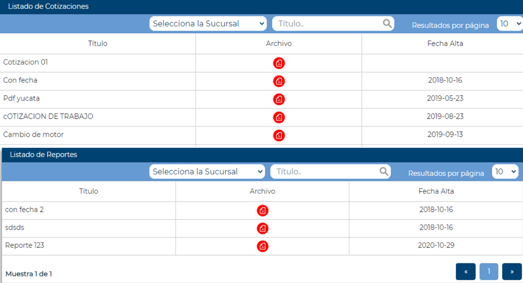 Registro y descarga de cotizaciones del proveedor.